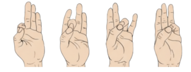 Oposición del pulgar: Toca la punta de cada dedo con el pulgar, estirando bien antes de pasar al siguiente.