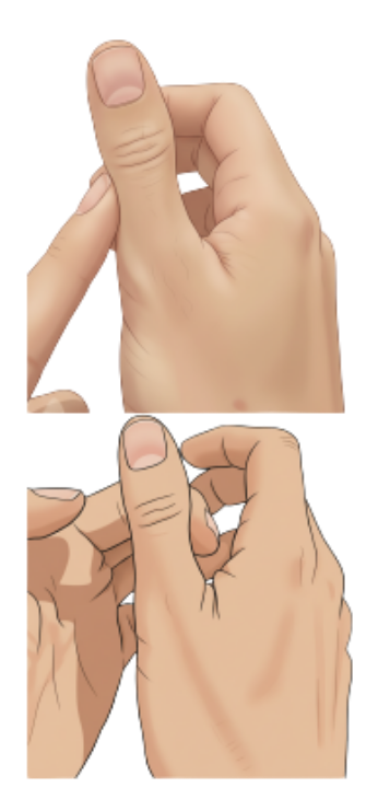Círculos suaves: Dibuja círculos pequeños con la punta del pulgar sobre la palma, en ambos sentidos.