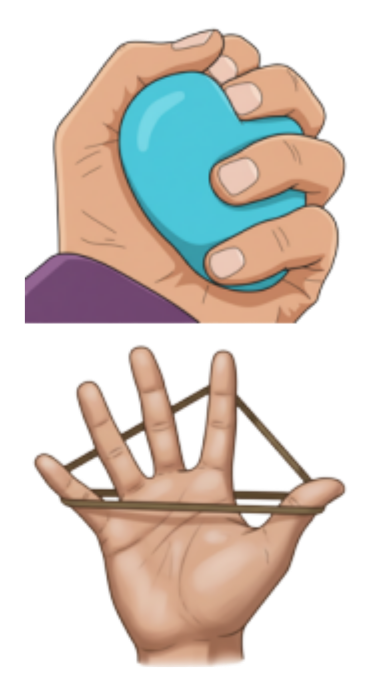 Pinza con pelota blanda o masilla: Mantén 3–5 segundos.